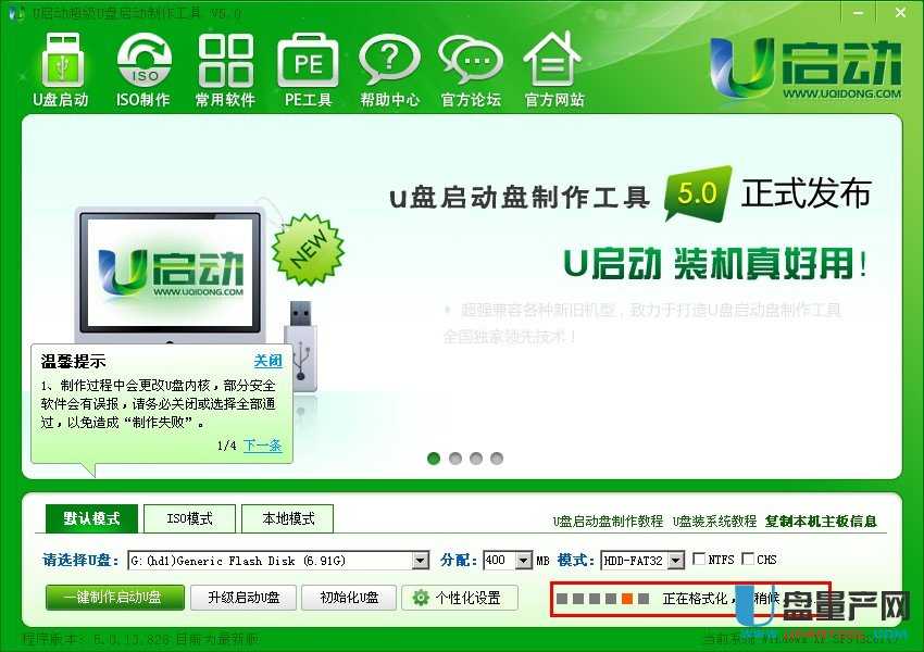 上图所示为正在自动格式化需要制作启动盘的u盘