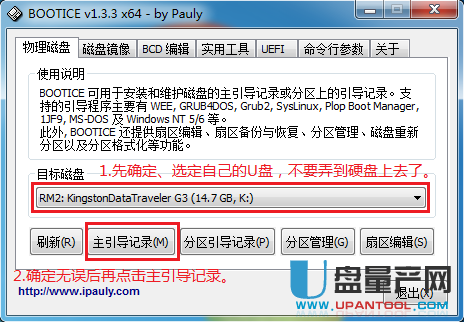 2).插上U盘或移动硬盘,打开BOOTICE软件: