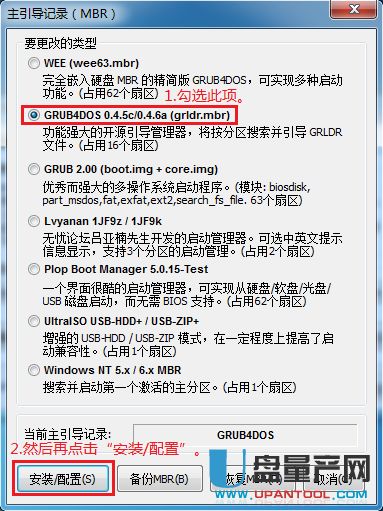 2、同样选择grub4dos0.4.6选项如上图,然后点安装/配置。
