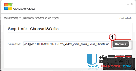 双击打开这个工具,点击浏览找到 Windows 7 的 ISO 文件,按 Next;