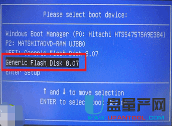 点击键盘的“↑”、“↓”方向键,选择U盘名称再按“回车键”。然后就进入了U盘装系统的安装过程。