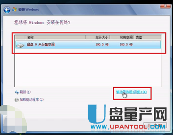 根据电脑硬盘大小及个人需求合理分配硬盘,选择“磁盘驱动高级”
