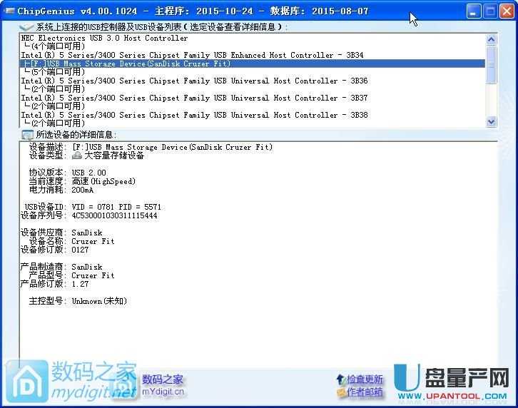 闪迪的啥都测不出,应该是自家的主控,不能量产,所以坏了只能找厂家。