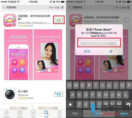 4、安装方法非常简单,点击应用名称右侧的【获取】,然后再点击安装,之后会要求我们输入Apple ID密码,这个密码是我们激活iPhone6 Plus时设置的那个,如下图所示。