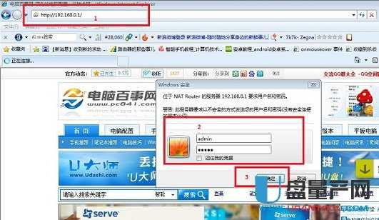 1、登录到WEB管理界面:在浏览器的地址栏中输入:192.168.1.1并按下回车键(Enter)——>在对话框中输入用户名:admin,密码:admin——>点击“确定”。