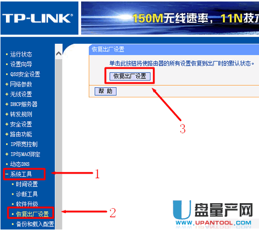 点击单击恢复到出厂设置的,就会让你确认一下,然后回重启路由器。再次正常启的时候就是出厂设置。