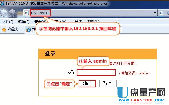 1、使用默认的管理地址192.168.0.1进入web管理界面:用浏览器打开192.168.0.1,输入默认的管理密码:admin,如已经修改了密码,则输入修改后的密码进行登陆。