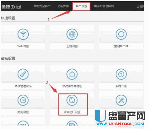 在360路由器设置页面,打开 恢复出厂设置 选项