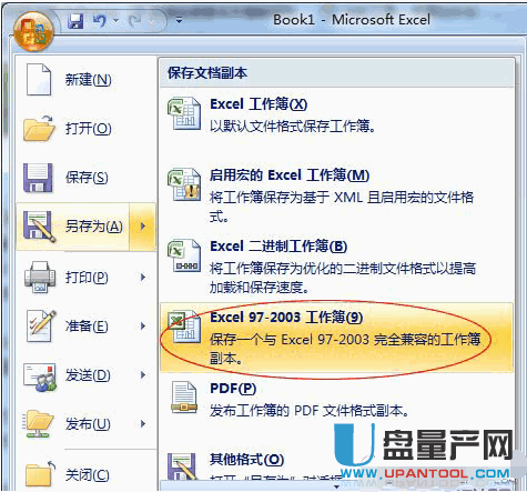 如果我们电脑上也安装了Excel2007或者以上的版本,抑或发给我们文件的那个人电脑上有的话,那就简单了,直接用Excel2007或者以上的版本打开xlsx文件,单击“文件”中的“另存为”,然后在打开的“另存为”对话框中将保存类型修改为“Excel 97-2003 工作薄(*.xls)”,保存文件即可。