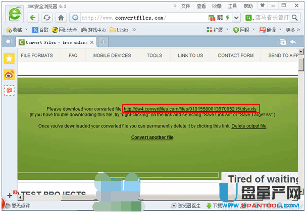 等待几秒后,转换完成,我们单击“Please download your converted file”后面的链接来下载转换后的文件。