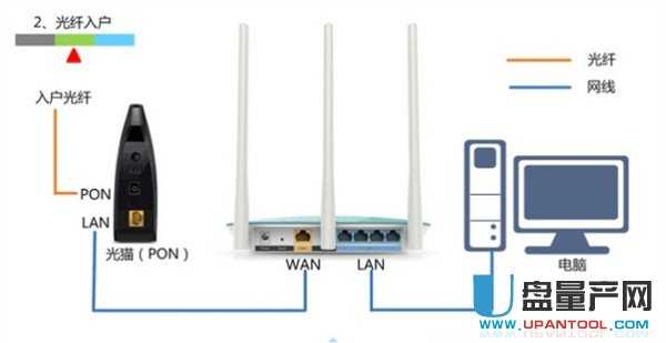 光钎上网:用户需要准备2根网线,其中一根网线用来连接光猫与路由器的WAN接口,另一根网线用来连接计算机与路由器的LAN接口(1/2/3/4中的任意一个都可以)。