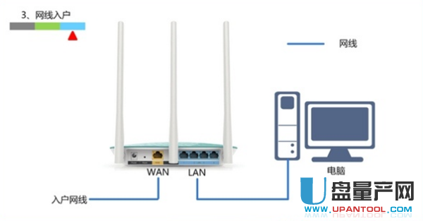 网线入户上网:用户需要准备1根网线,先把宽带运营商提供到用户家里的那根网线插在路由器的WAN接口,再把准备的这根网线,一头连接电脑,另一头连接路由器的LAN接口(1/2/3/4中的任意一个都可以)。