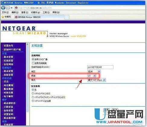 登录无线路由器A管理界面设置(登录路由器的方法在前几节文章有详细介绍,不懂的朋友先去复习下前面的文章)192.168.1.1,点击左侧菜单中的安装->无线设置。若路由器默认无线频道为auto(自动),必须首先将频道改为固定的数值,一般情况都是使用1、6或11无线频道。