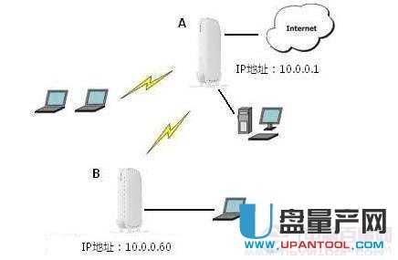 例如:无线路由器A已经连接到了Internet,A的无线信号覆盖范围有限;无线路由器B上开启WDS功能,然后无线路由器B就可以通过无线的方式连接到无线路由器上;同时无线路由器B还可以提供一个自己的无线信号,无线设备连接到路由器B的无线信号上面,也是可以上网的。具体操作方法以腾达路由器为例: