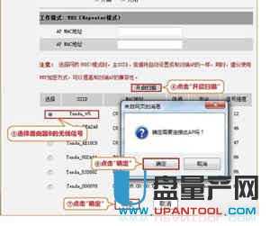 2.选择“无线中继器”模式,在“基准工作站MAC地址”中,填入A路由器的MAC地址;