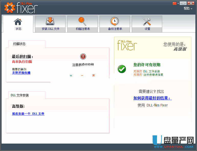 为什么会用到dll修复工具呢?因为我们在打开某些程序或者软件的时候会提示找不到某某.dll文件,关键是这些dll文件还不一样,我们去网上下载这些dll文件结果显示跟系统的版本不一致,反正就是各种麻烦,自己去找又费时又费力,而且往往对于有些游戏来说,修补了某一个dll又提示缺少另一个dll文件,这些其实可能都是系统本身太精简或者没有安装一些依赖软件导致的,这时候你完全不需要手动去找这些dll文件,只需要使用dll修复工具就能自动扫描缺少哪些dll并自动修复,这样一来就比自己去找dll文件方便太多了,但你会发现dll修复工具琳琅满目的,也不知道哪一个好,全部都下载下来又浪费时间,所以U盘网直接给到大家最好的几款dll修复工具,依次排名如下:
